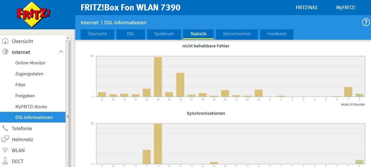 Meine DSL Geschwindigkeit ist nach jahrelangem stabilen Betrieb bei ca. 14Mbit plötzlich auf 9-10Mbit eingebrochen und dazu kommen noch ständige Verbindungsabbrüche. Ich kann den Beginn der Störung konkret auf den Tag an dem ein Nachbar (Selbes Haus und Kabel zum Verteiler) VDSL bekommen hat zurückverfolgen – den 22 November. Es kann ja kaum sein das bei einem Nicht Shared Medium plötzlich die Qualität um über 30% einbricht…