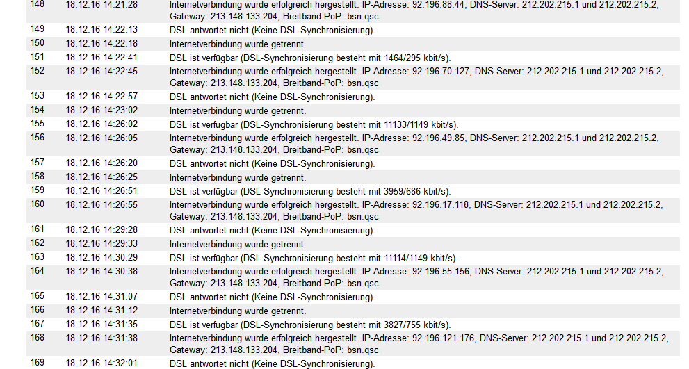 Zwei weitere Wochen mit hin und her mit zahlreichen weiteren Anrufen, geschickten Router Logs, ausgetauschten Router und Port-Resets brachten keine Besserung, so dass es sogar endlich Congstar eingesehen hat und einen Techniker raus muss. Also wurde mir am 12 Dezember ein Technikertemin für den 19. Dezember zugesagt. Der Techniker kam allerdings nicht und laut Leitungsbetreiber sei alles in Ordnung.