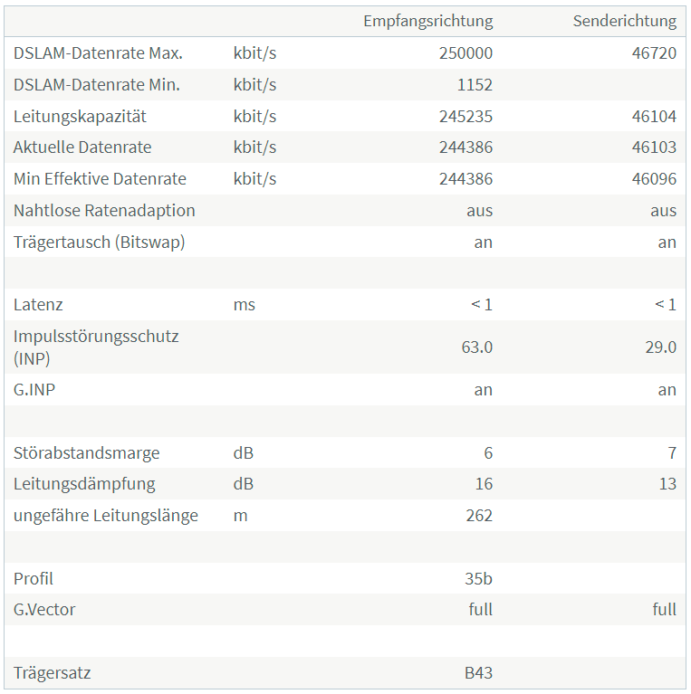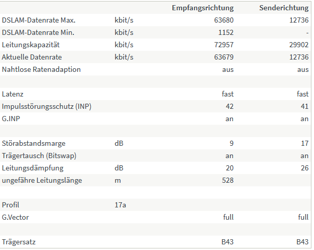 der Grund meiner Frage ist, ich hatte bis Montag MagentazuHause M mit angeblich bis zu 50 MBit und eigentlich durchgängig 63 MBit geschaltet. Nun bin ich umgestiegen auf MagentazuHause L mit, natürlich wieder "bis zu", 100 MBit und meine 7490 synchronisiert trotzdem nur mit 63 MBit. Ist davon auszugehen, dass die 7590 (ax), wegen das VDSL2 Modems, höher synchronisieren könnte oder steht die Chance schlecht wegen der über 500m zum DSLAM?
