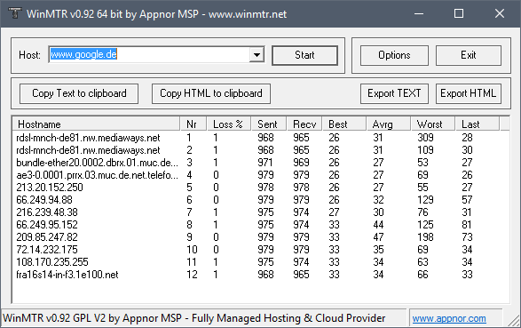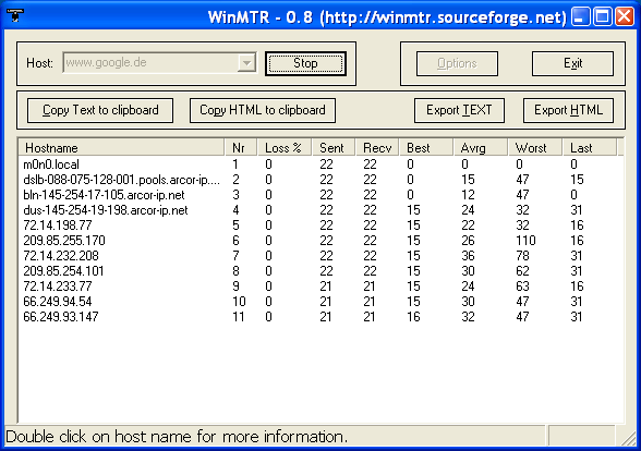 Hast bei WinMTR ne Webseite als Ziel angegeben?