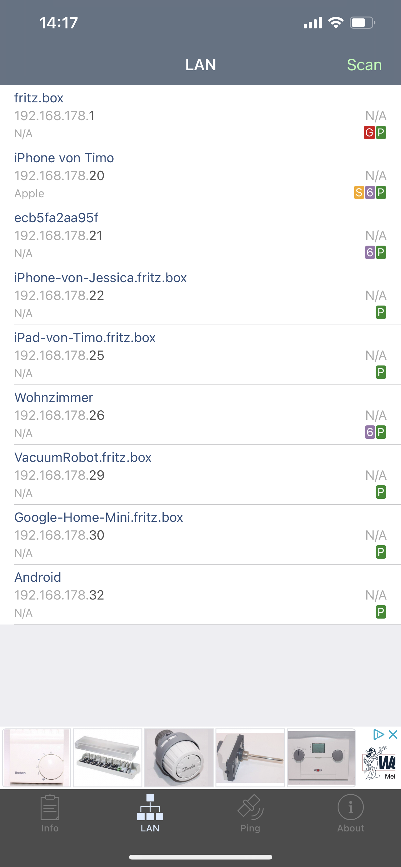 Meintest du sowas ?pufferueberlauf schrieb:Eigentlich ein Luxusproblem, vielleicht gibt da ein Analog zum WiFIAnalyzer, nur habe ich selber kein annaehernd aktuelles iOS Geraet und deshalb keine Ahnung... ich wuerde immer noch versuchen ein Laptop auszuborgen...