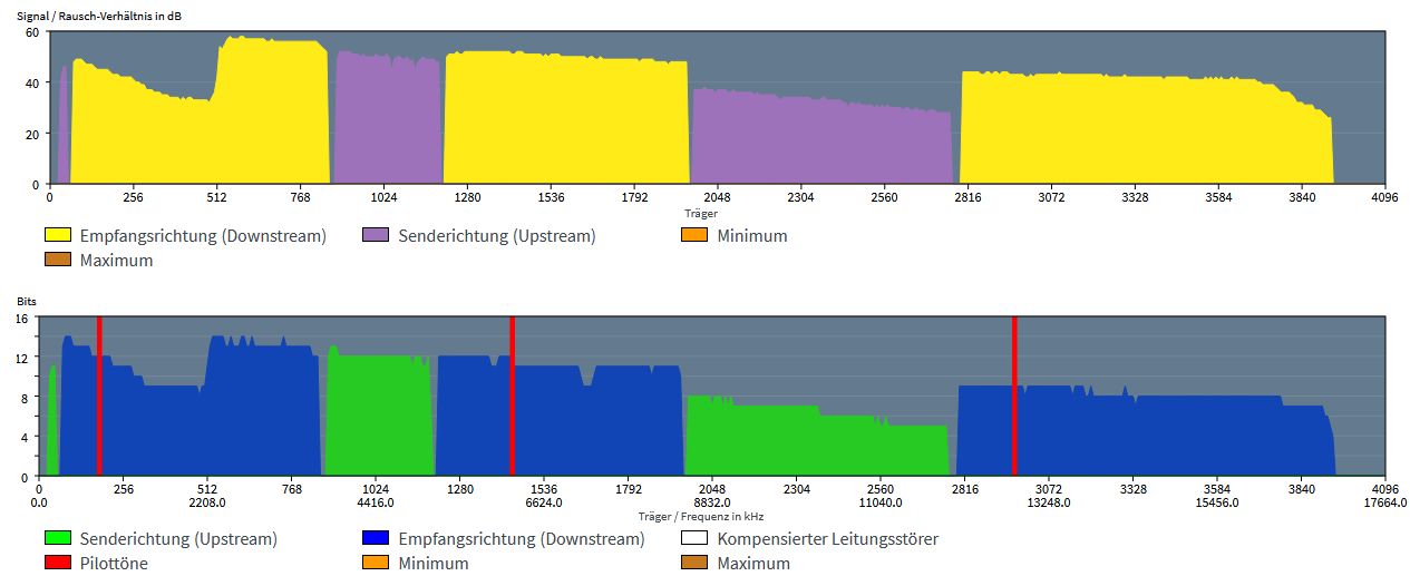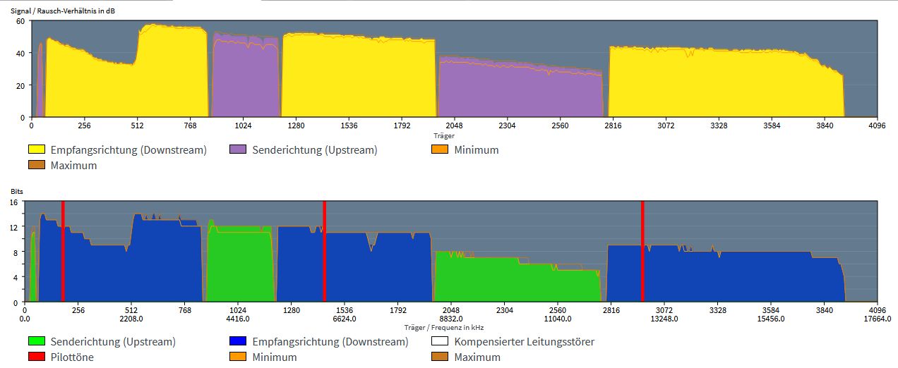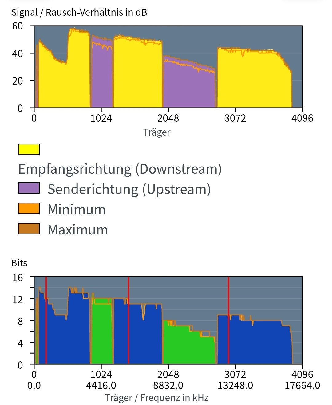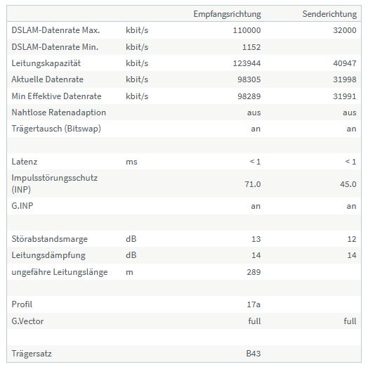 Nach Rücksprache mit 1&1 und einem Test der Leitung (Stecker aus der TAE-Dose entfernt für zwei, drei Minuten), war die Aussage vom ISP, dass meine FB einen Defekt aufweist, man würde mir aber zum Sonderpreis eine neue 7590 verkaufen. Bevor ich Geld auf das Problem werfe und die Ursache liegt womöglich doch an der Leitung, würde ich mich freuen, wenn jemand die Werte der Leitung einschätzen kann: