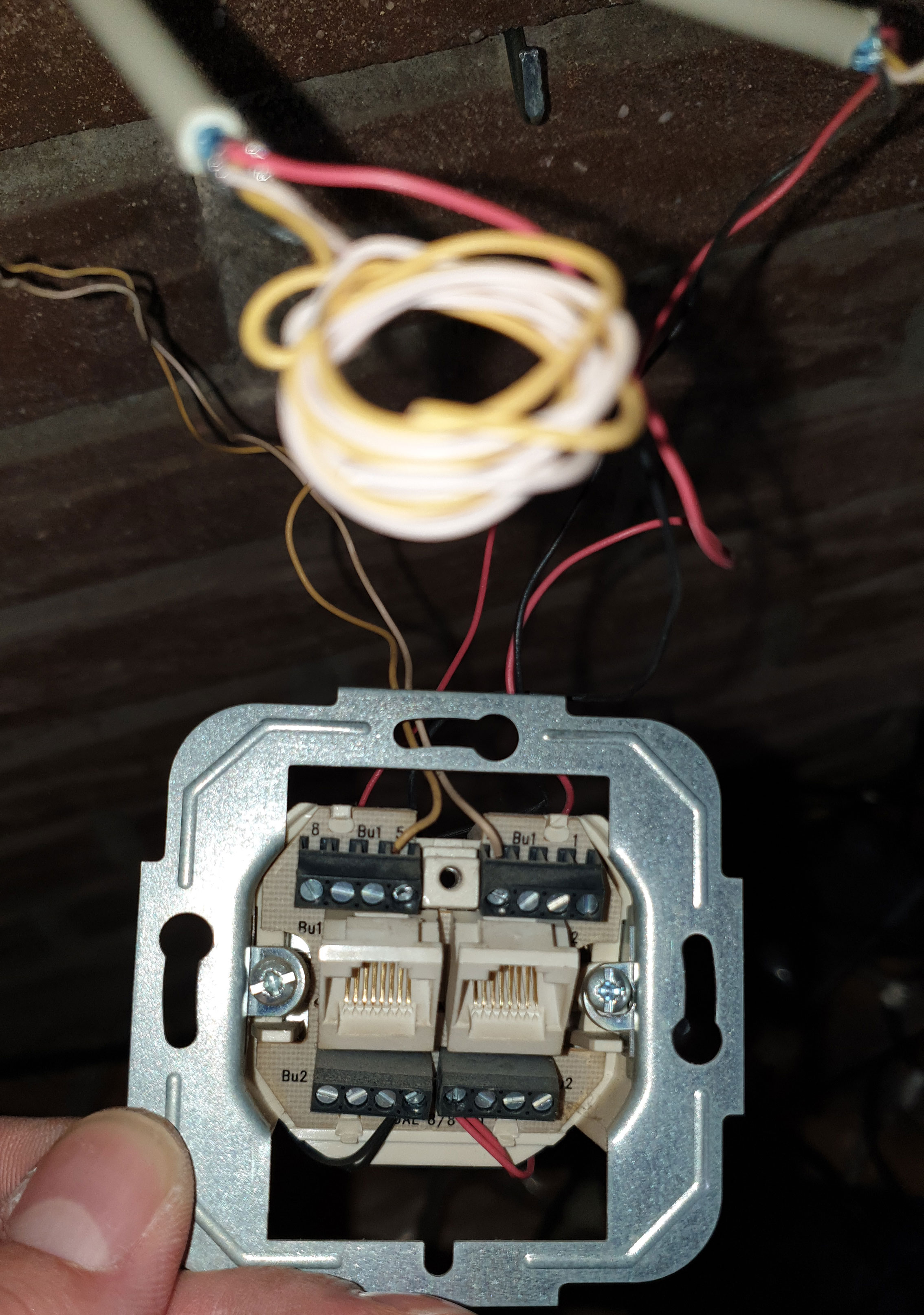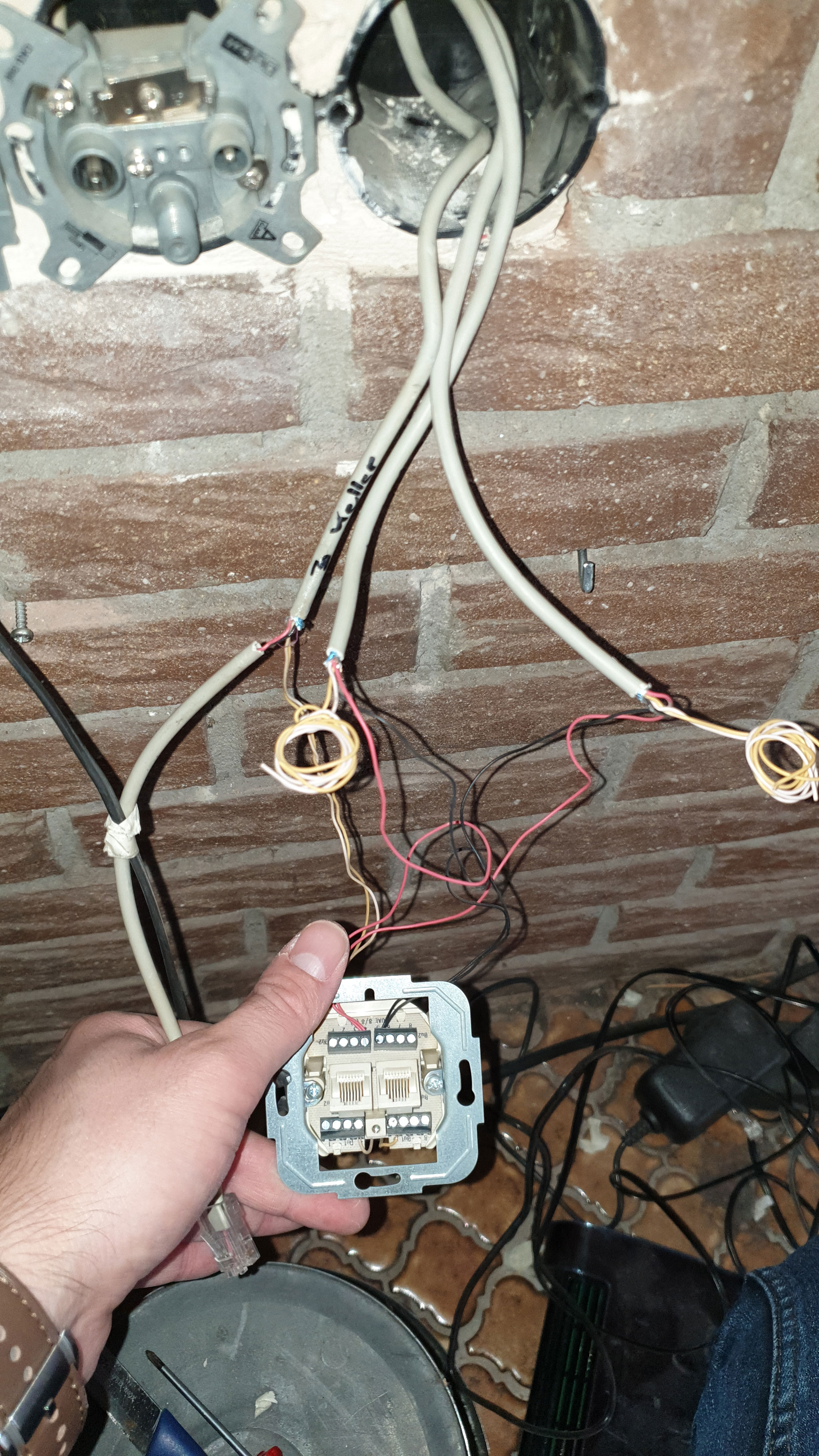 Angeschlossen wird ein Telefon meiner Mutter und eine Telefonleitung geht ins Erdgeschoss in die Wohnung meiner Oma (Mehrgenerationenhaus, ein Telefonanschluss reicht ja). Das dritte Kabel, welches zu sehen ist geht in einen anderen Raum bei meiner Mutter, als mögliche Standortwahl des Telefons.