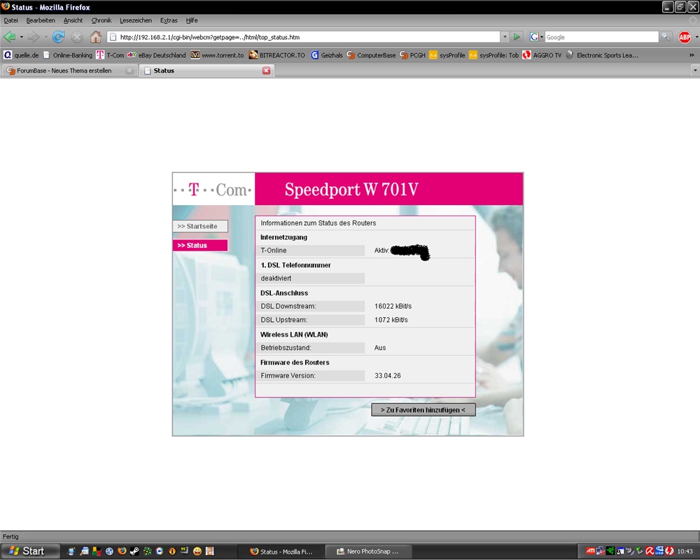 Um alles andere auszuschließen zu können habe ich meinen Virenscanner durchlaufen lassen nichts, andere Programme fanden auch keine Trojaner oder ähnliches, es greifen auch sonst keine Programme auf das Internet zu also das kann man ausschließen! Neuen Splitter habe ich dran inkl. synchronisieren zwischen Router und Splitter bringt alles nichts.