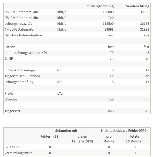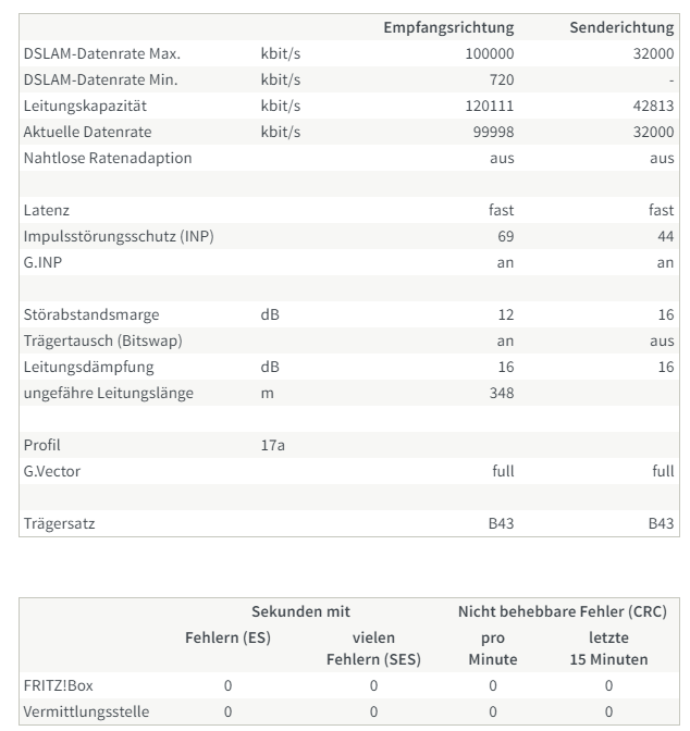 - DSLAM Datenrate Max ist natürlich gleich geblieben bei 100/32 aber die Leitungskapazität ist doch merklich hoch gegangen