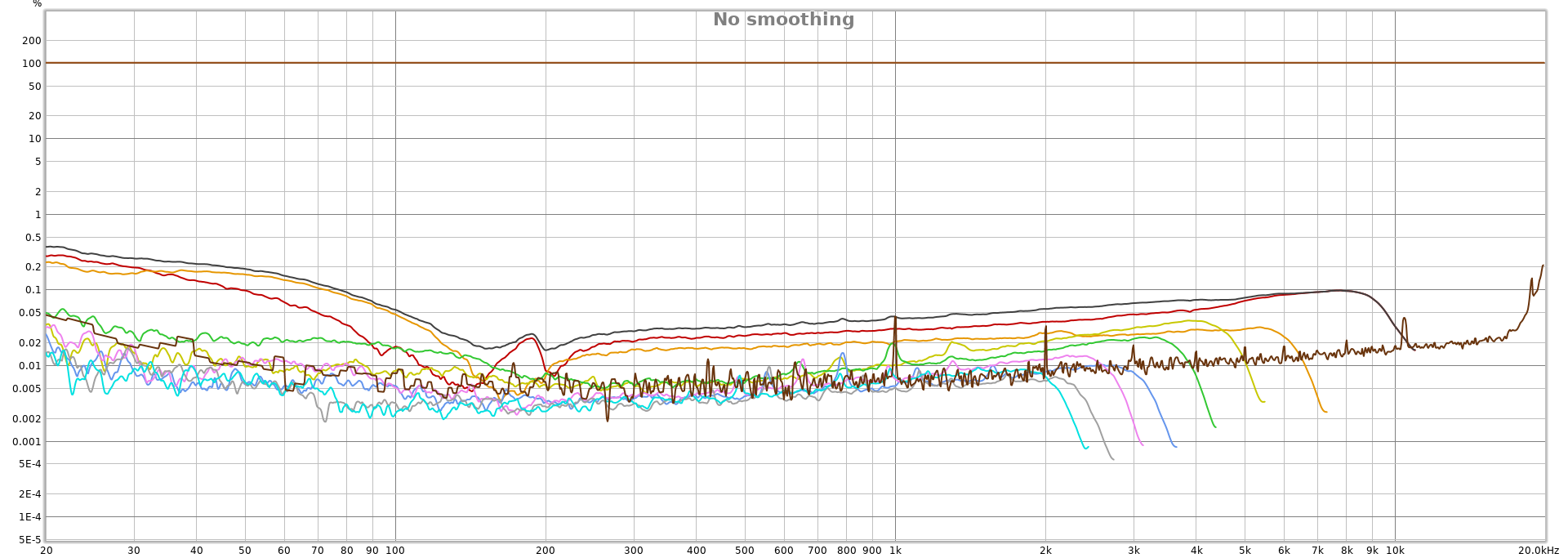 Wir sehen THD+N von dem eingangs Signal einmal in ein 36Ohm und einmal in ein 250ohm Kopfhörer