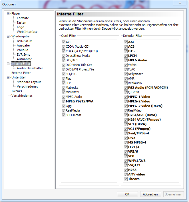 Habe installiert AC3 Filter, Haali Media Splitter sowie CoreAVC