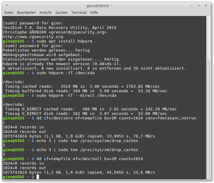 Folgende Seite/Anleitung habe ich dafür genutzt: https://wiki.ubuntuusers.de/Festplatten-Geschwindigkeitstest/