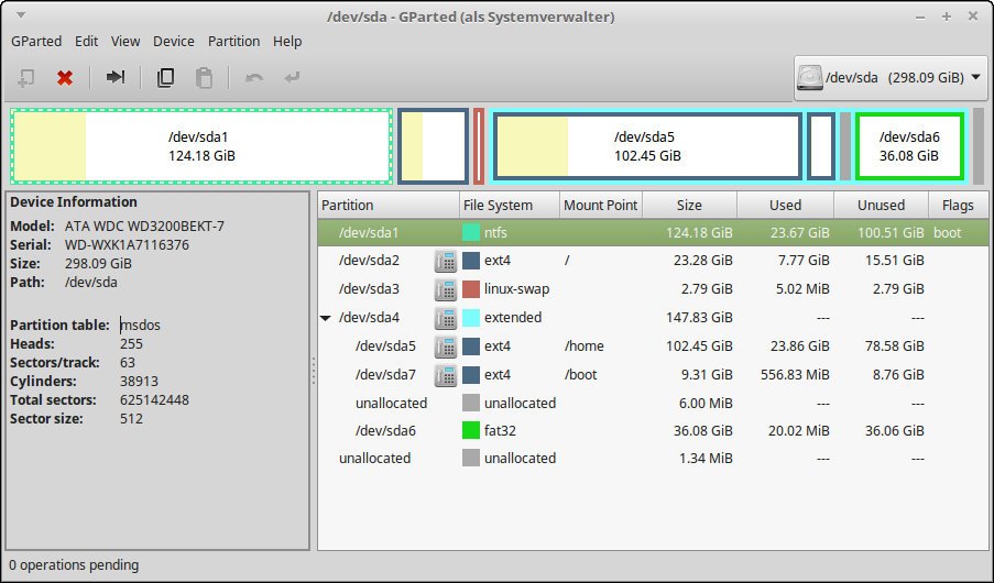 Ein Screenshot von Gparted: