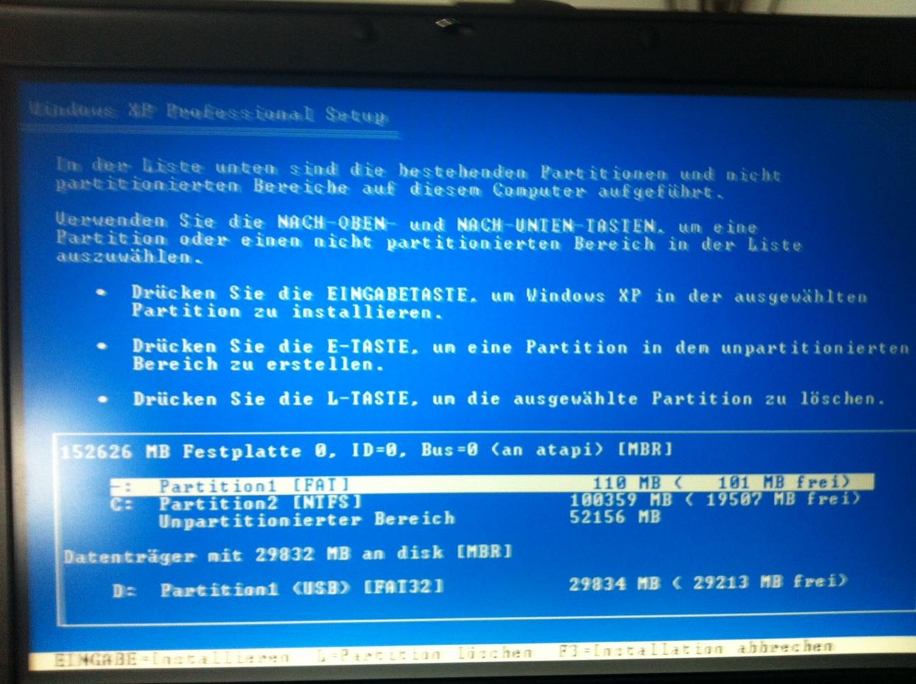 PC hochgefahren und da waren weiterhin die Einträge um WIN 7 oder XP zu starten. Also habe ich es erneut mit XP versucht und darauf erschien eine sinngemäße Meldung: