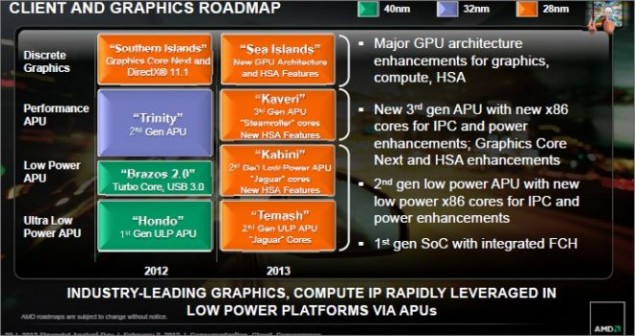 Bist du dir sicher, dass AMD für Richland gesagt hat der kommt in 28nm und das sdiese Gerüchte nicht nur irgendwo entstanden sind, weil sich das irgendjemand gewünscht hat? Mir ist nur bekannt, dass Kaverie mit GNC, Steamroller und in 28nm in den Kampfring gehen soll. Wenn du da also ne Quelle für hättest, wäre das ganz nett. Mir sind nämlich nur folgende beiden Folien bekannt: