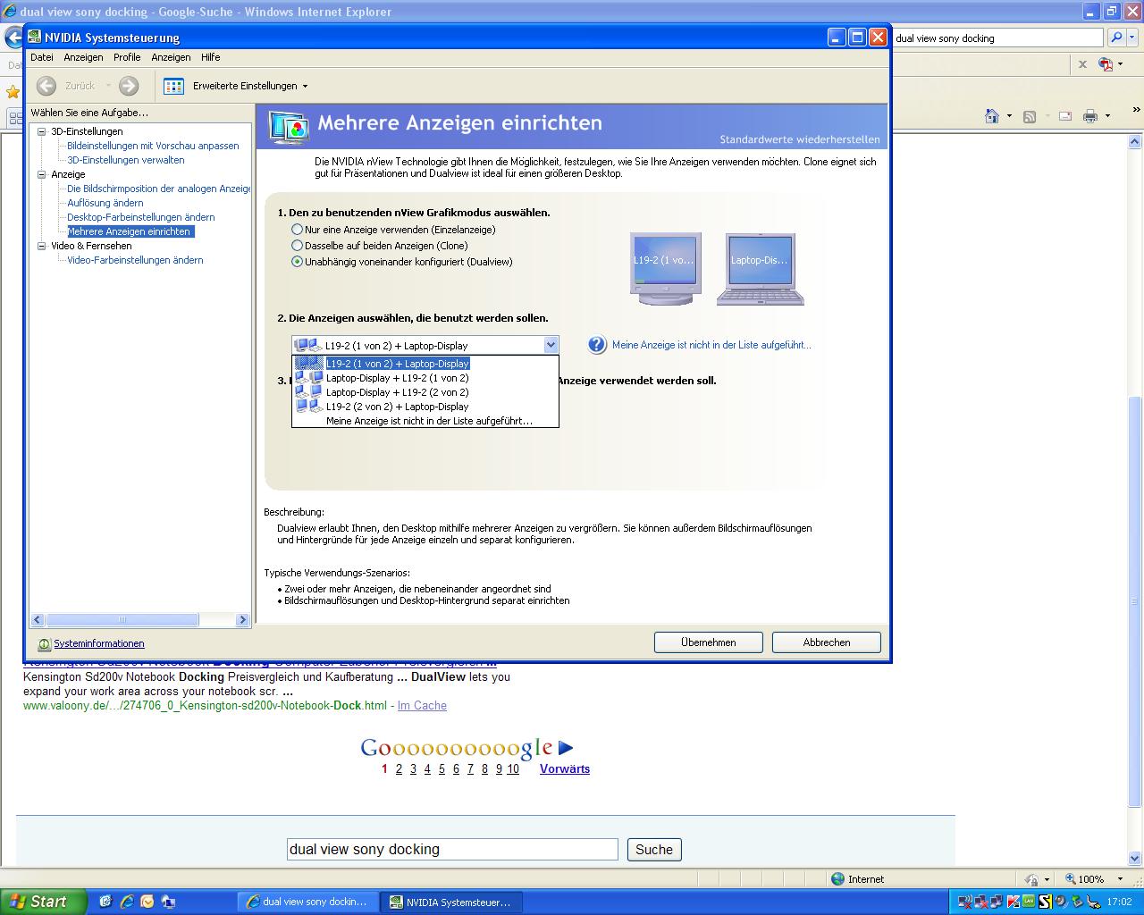 An der Docking-Station sind 2 Monitoranschlüsse. Ich bin also davon ausgegangen, dass ich zeitgleich 2 Monitore betreiben kann. Dual View sozusagen - den Desktop erweitern.