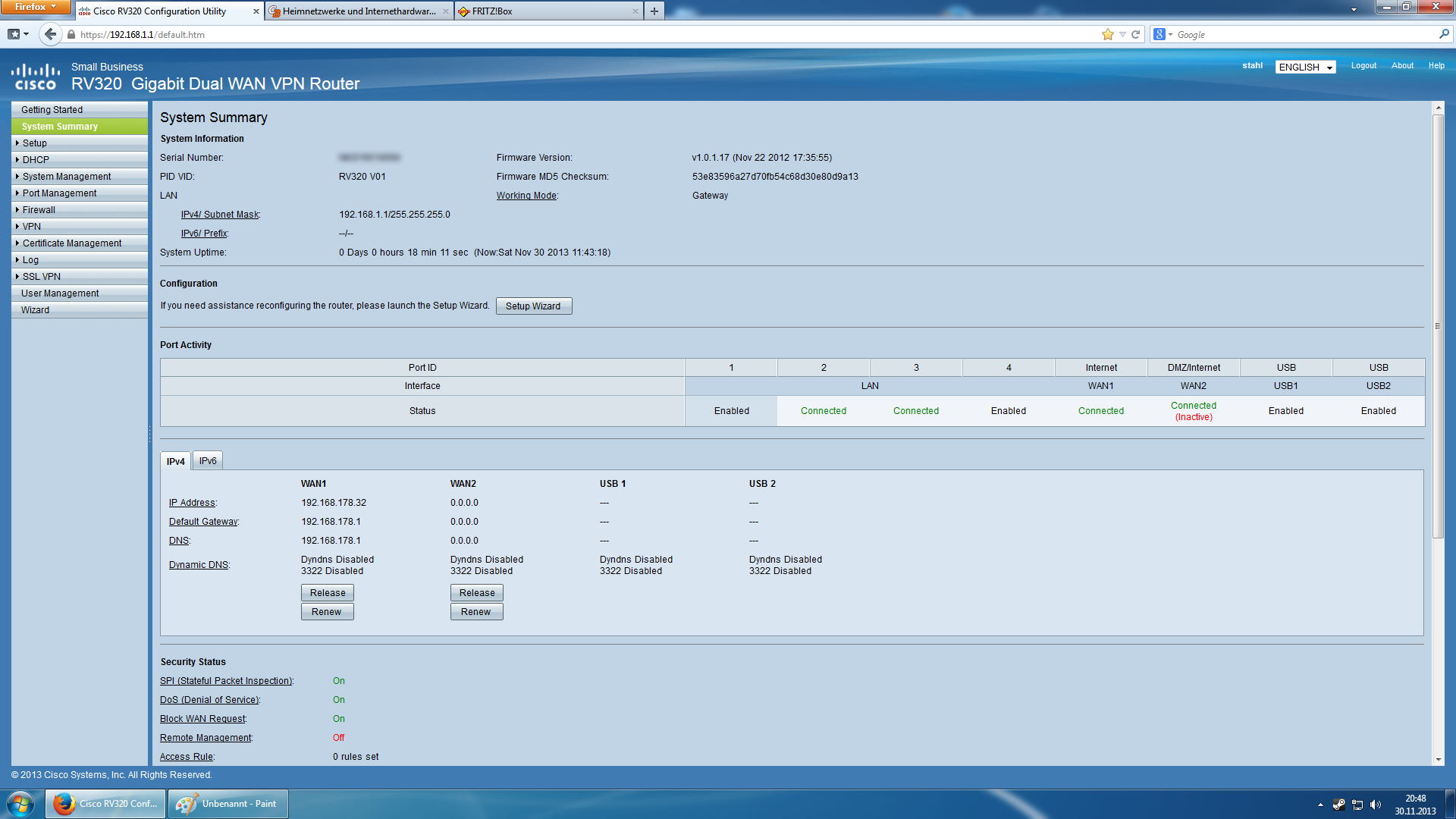 Ich möchte mir ein Dual WAN Netzwerk aufbauen, da Kabel Deutschland nicht in der Lage ist meinen Internetzugang Störungsfrei zu liefern. Daher habe ich unabhängig davon noch DSL über htp bestellt (der Anschlußtermin ist erst am 06.12.2013). Folgende Netzwerkstruktur: