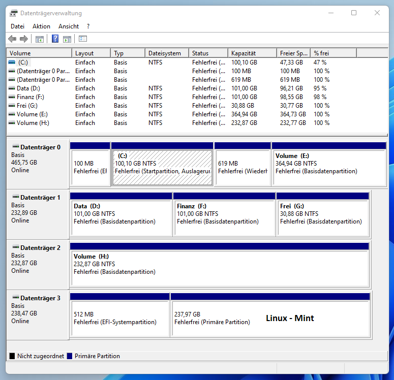 Also irgendwas läuft da schief bei der Installation. Es ist keine Partition für Linux vorhanden, nur NTFS und da kann Linux nativ nun nicht drauf installiert werden.