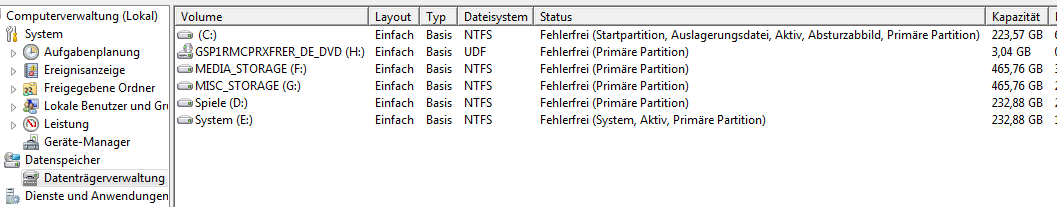 Die Festplatte C ist die Win7-Installation auf der (nachtäglich verbauten) SSD.