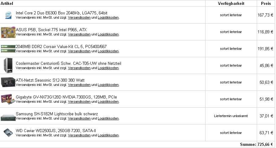 Ich bräuchte also relativ viel RAM (mind. 1GB) und einen schnellen DualCore-Prozzesor. Das ganze System sollte nicht mehr als ca. 700€ kosten, bei 775€ liegt die absolute Schmerzgrenze. Bezüglich Prozzesor denke ich an einen "Athlon 64 X2 4200+" oder einen "Pentium® D Processor 930".