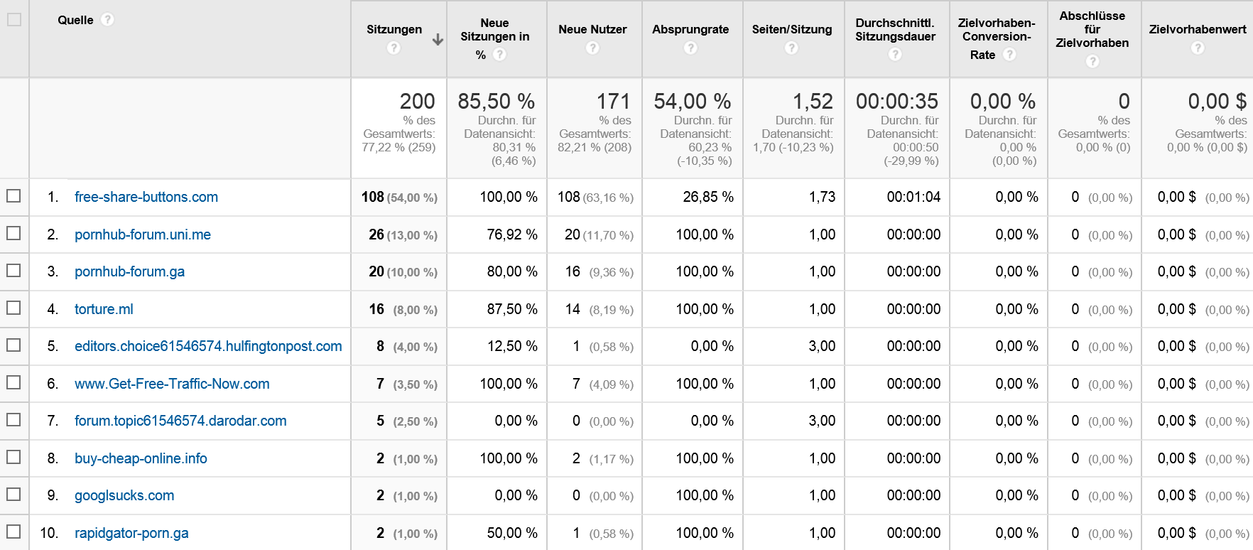 Auch wenn es wohl nichts schlimmes ist, ist es schon etwas ärgerlich, wenn bei Analytics 70% der Benutzer fake sind...
