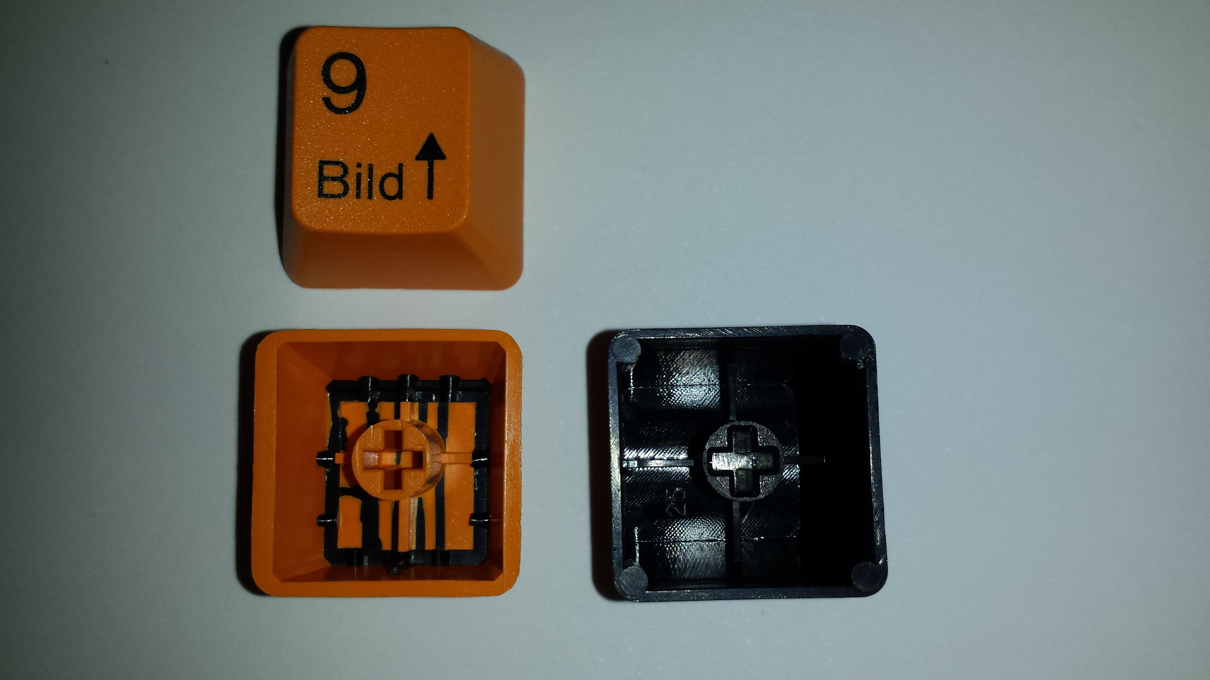 Habe ein Screnshot von zwei Caps aus den Set von Ebay gemacht, dazu im Vergleich eine "normale" ABS Tastenkappen wie sie von der Ducky Zero stammt.