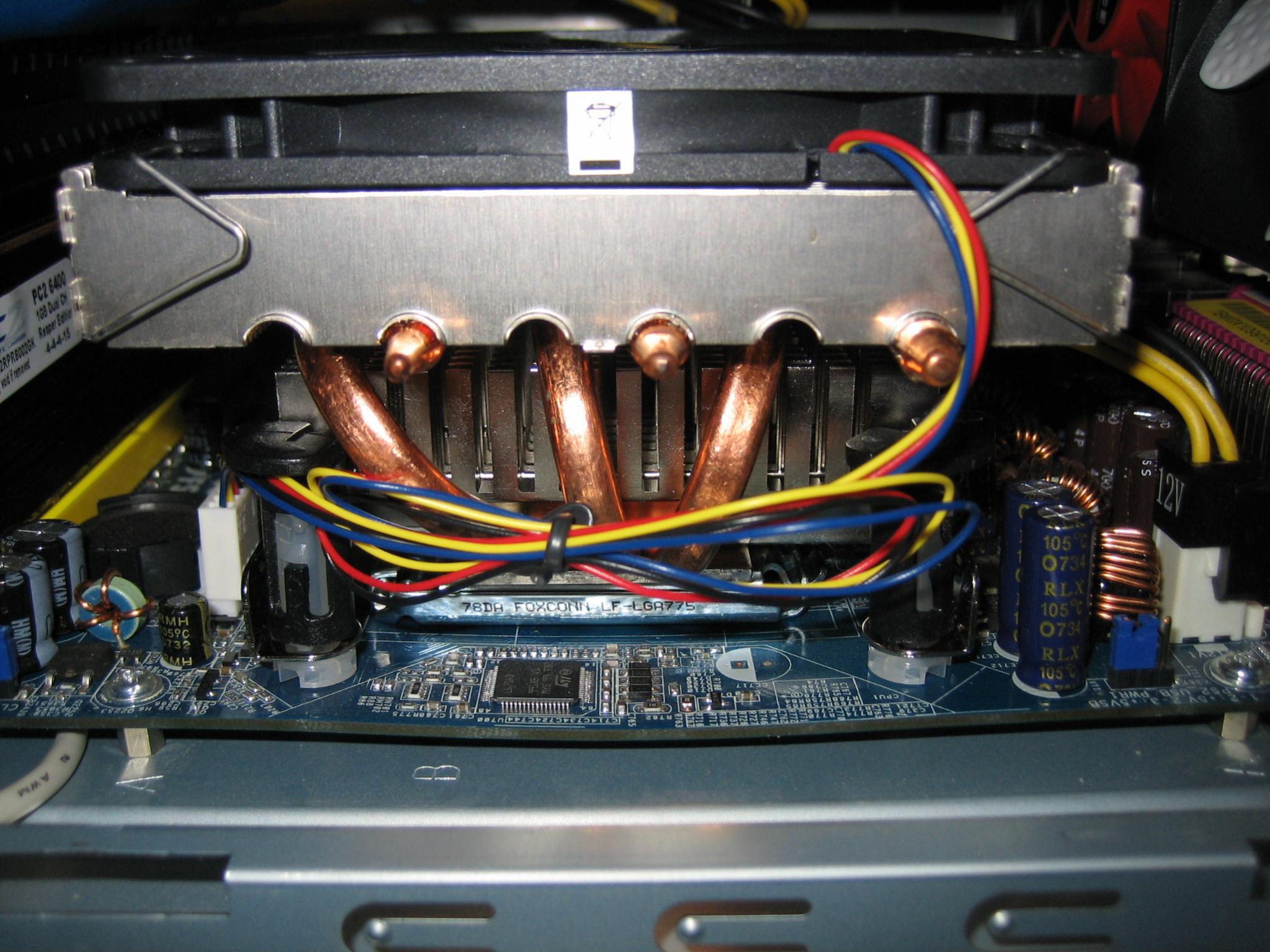 So ein ähnlich günstiges Teil von ASRock, ein 4Core1333-FullHD, hatte ich auch mal im Zweitrechner und es läuft immer noch problemlos bei meinem Bruder. Jedenfalls war ich schon sehr erstaunt, wie sehr sich das Mainboard unter der "Schwerlast" eines Minikühlers wie dem Scythe Shuriken mit Pushpins durchbiegen kann, siehe Pic:bnoob schrieb:Glaub mir, zumindest dieses IST müllig.