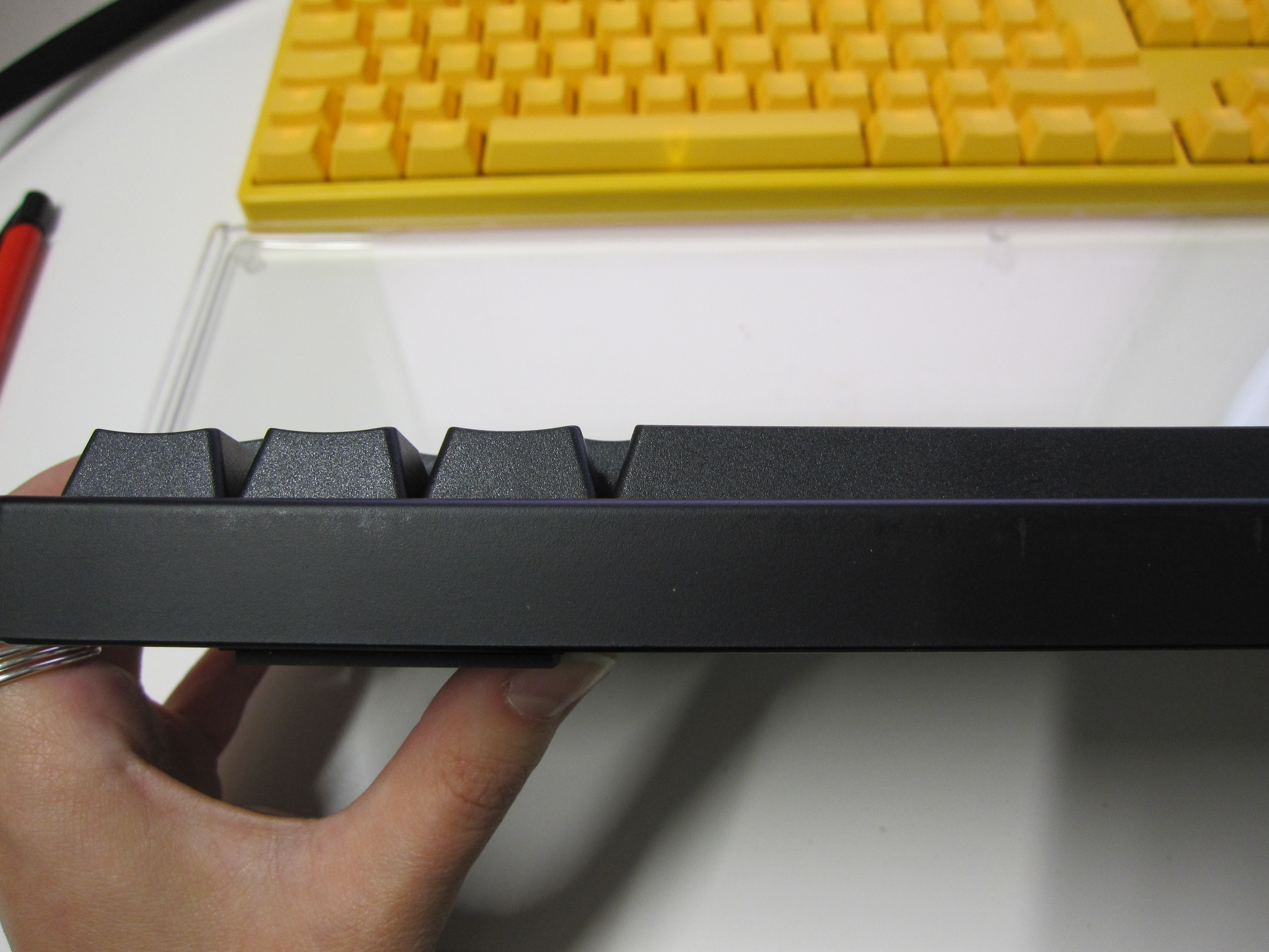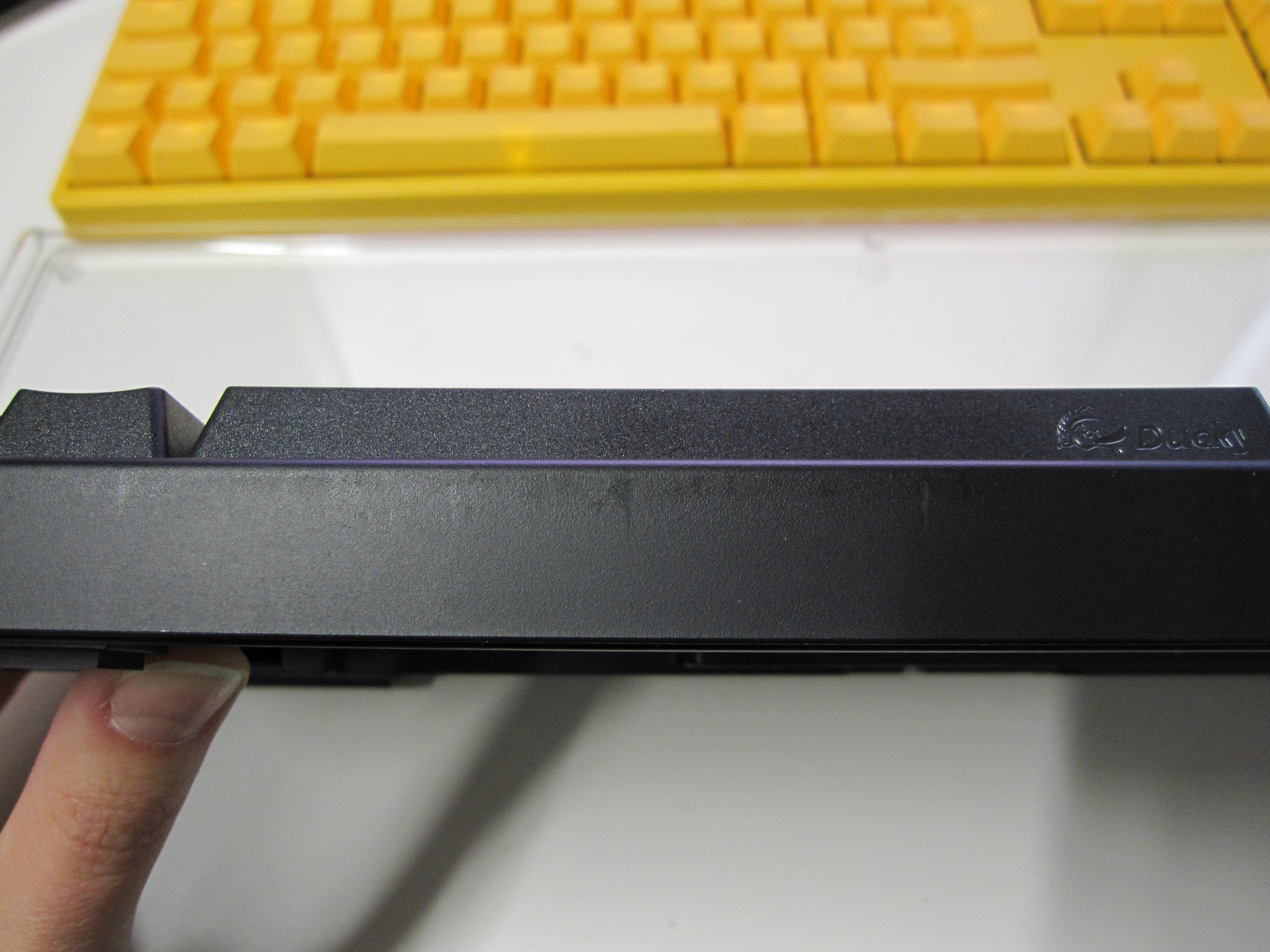 /Edit: Wir ihr auf dem "Familien-Foto" sehen könnt habe ich ja die G2Pro nocheinmal mit den weißen Keycaps. Die kam aus Amerika, ebenfalls mit Plastikabdeckung, und ist schon einige Monate in Nutzung. Die hat kein einzigen Kratzer bisher.