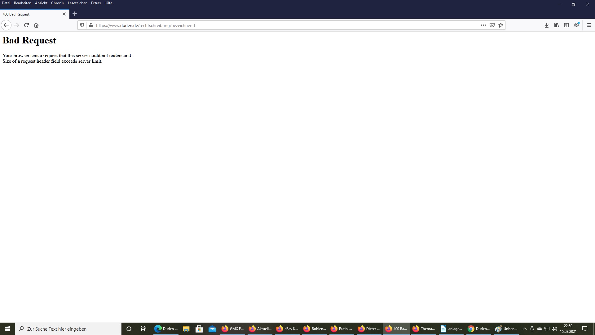 seit einigen Tagen fällt mir auf, dass der Duden online über Firefox nicht erreichbar ist bzw. stets folgende Fehlermeldung auf der Webseite erscheint: