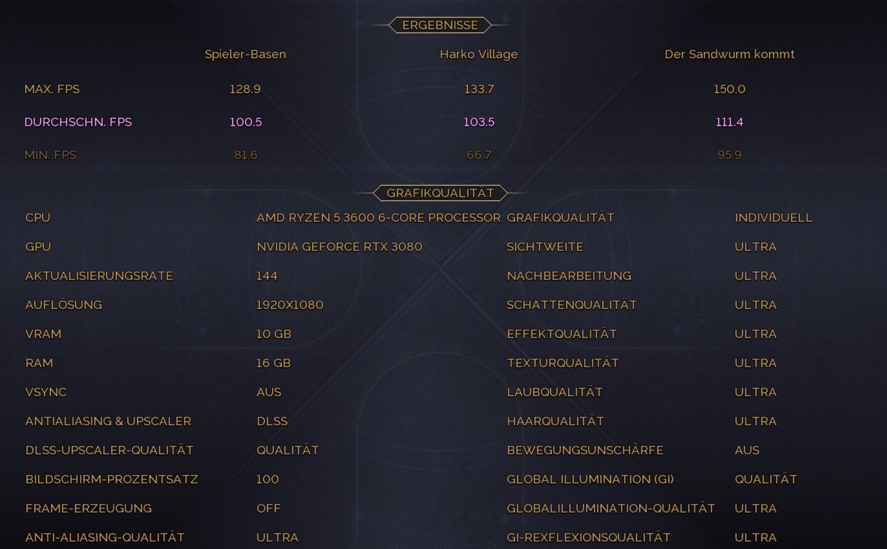 1. Ich bin der Typ Mensch "never change your running system". Für einen Community Benchmark meine Zeit zu opfern bin ich bereit, jedoch nicht die Stabilität meines Systems. Deshalb die Angabe unter Vorbehalt.Artur_no1986 schrieb:so woie ich es hier gelesen habe ist es wichtig, dass der Treiber auf dem neuesten Stand ist, da mit dem alten wohl irgendwas nicht vorbereitet ist für Dune und die Leute mehr FPS haben.
