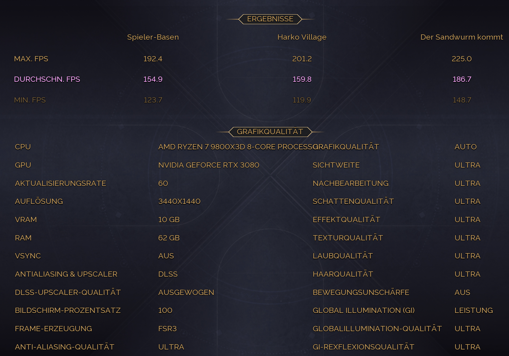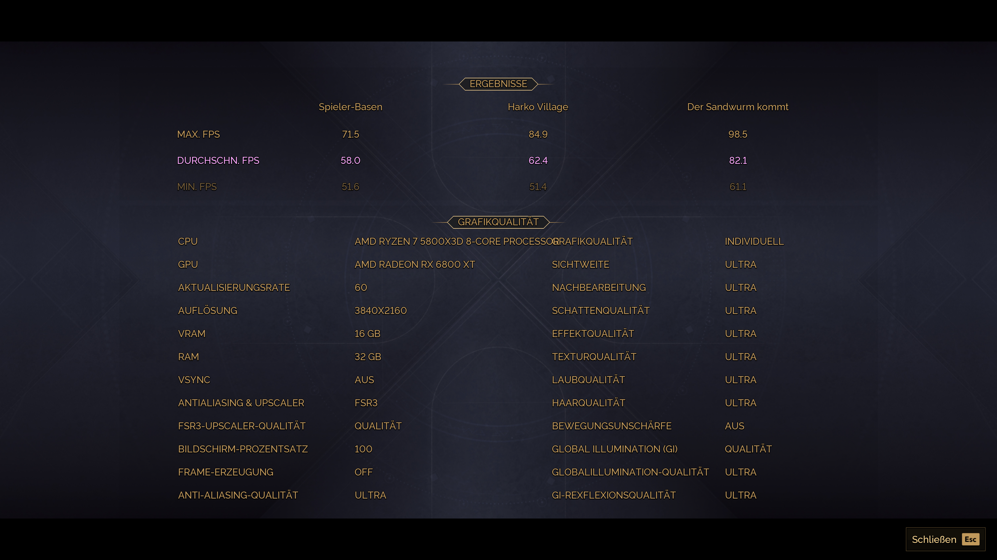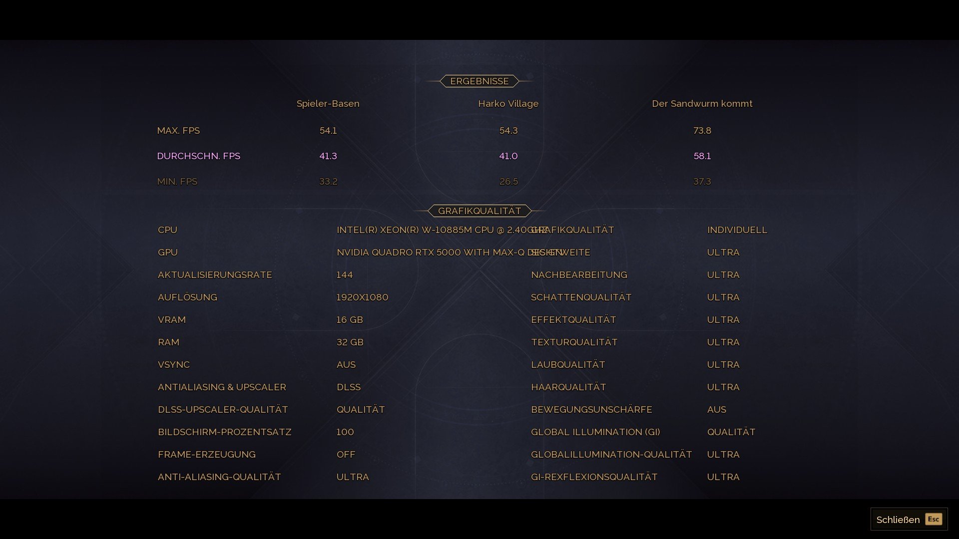 1.920 × 1.080, „Ultra“, DLSS/FSR Quality, FG Aus – AVG-FPS Spieler-Basen: 16,4