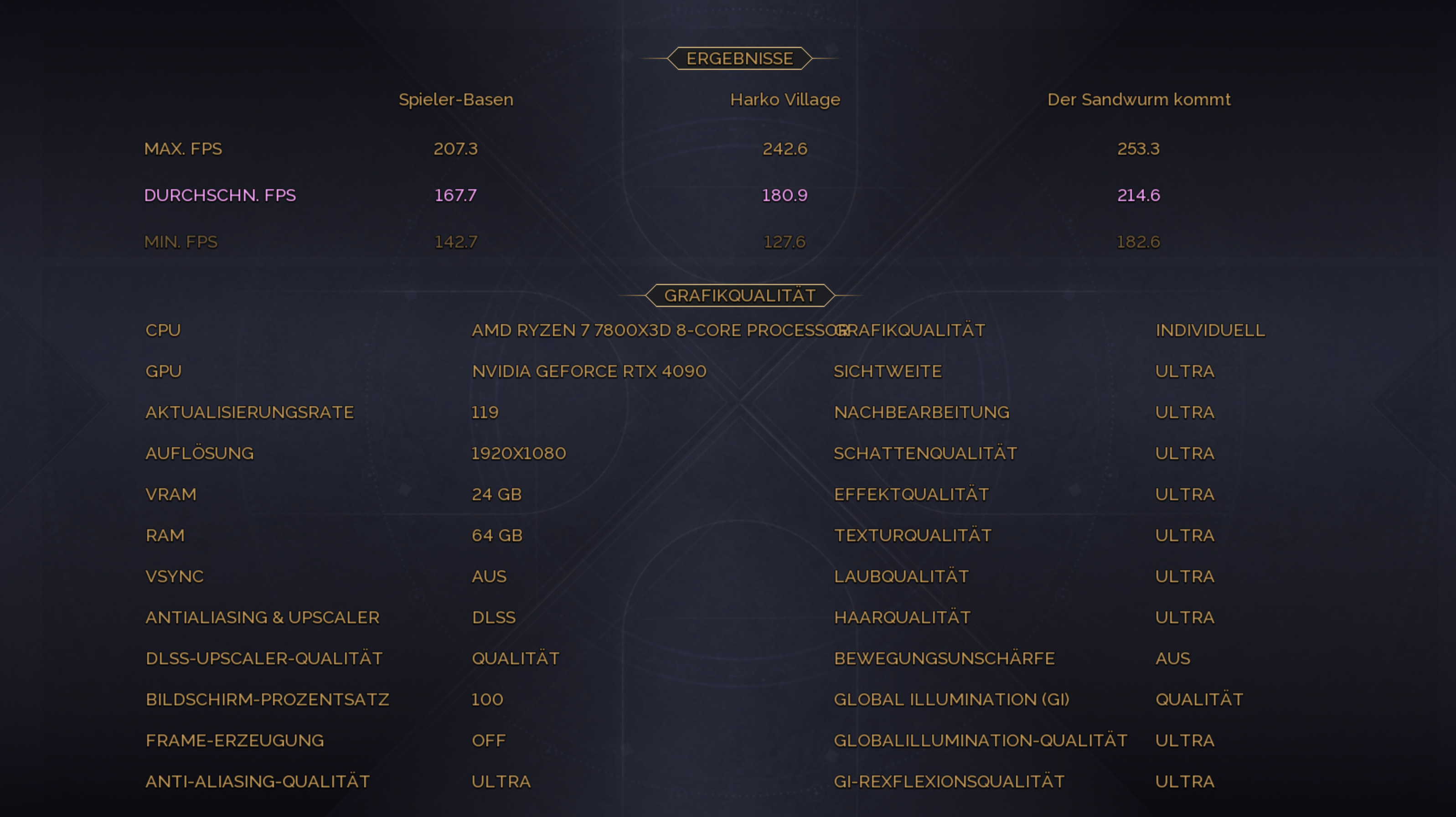 1.920 × 1.080, „Ultra“, DLSS/FSR Quality, FG Aus – AVG-FPS Spieler-Basen: 167,7