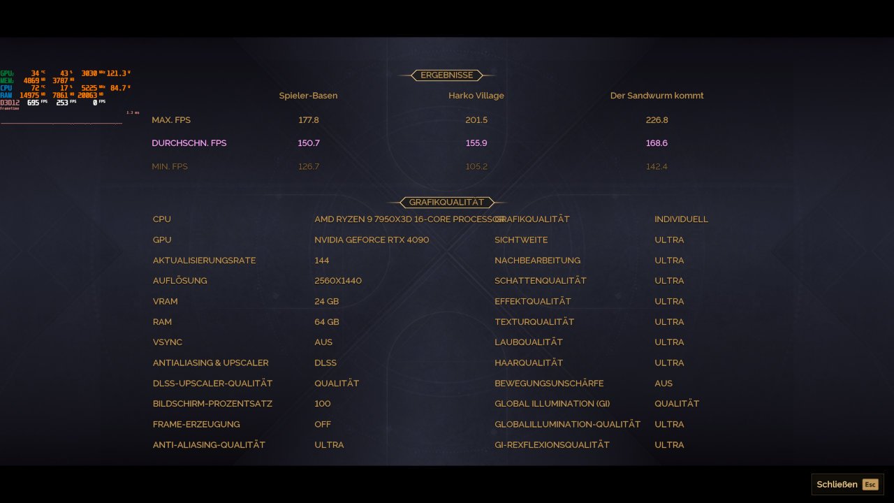 2.560 × 1.440, „Ultra“, DLSS/FSR Quality, FG Aus – AVG-FPS Spieler-Basen: 120,9