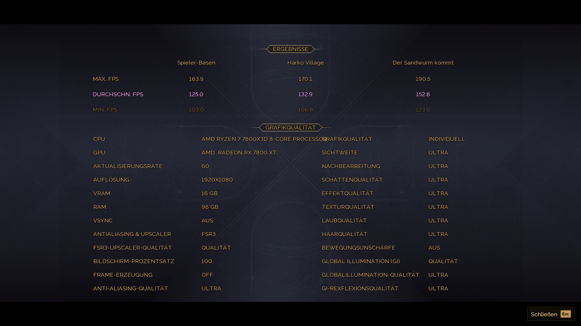 Deine Settings sind leider falsch, FG noch an, falsche FSR Qualität und nicht alles auf ULTRA.swarly_cb schrieb:System: RX 7900 XT, 7800X3D