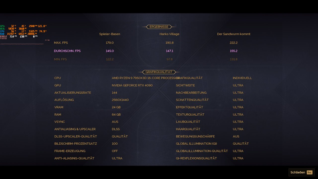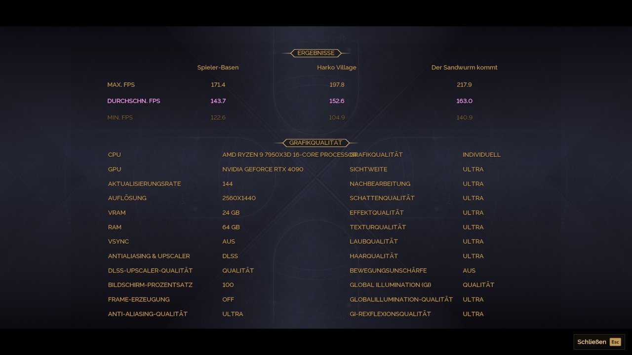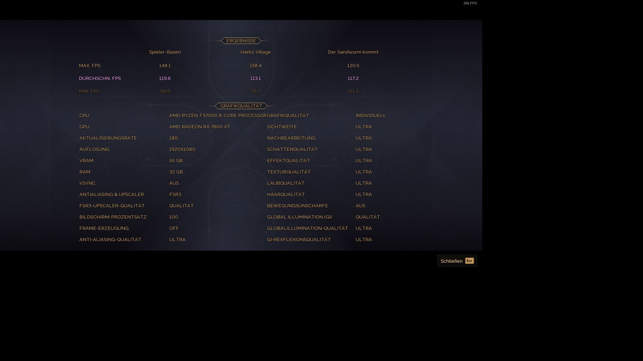 Edit: Wurde mit proton-GE 9.23 laufen gelassen, mit Proton Experimental sind die Ergebnisse 0,1 FPS geringer.