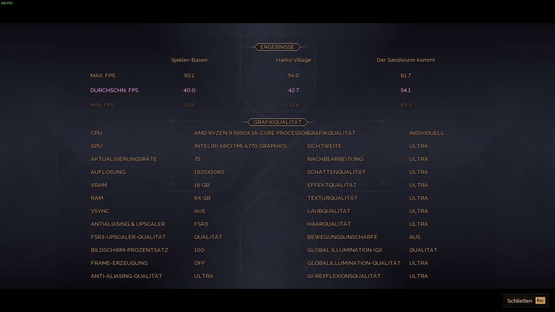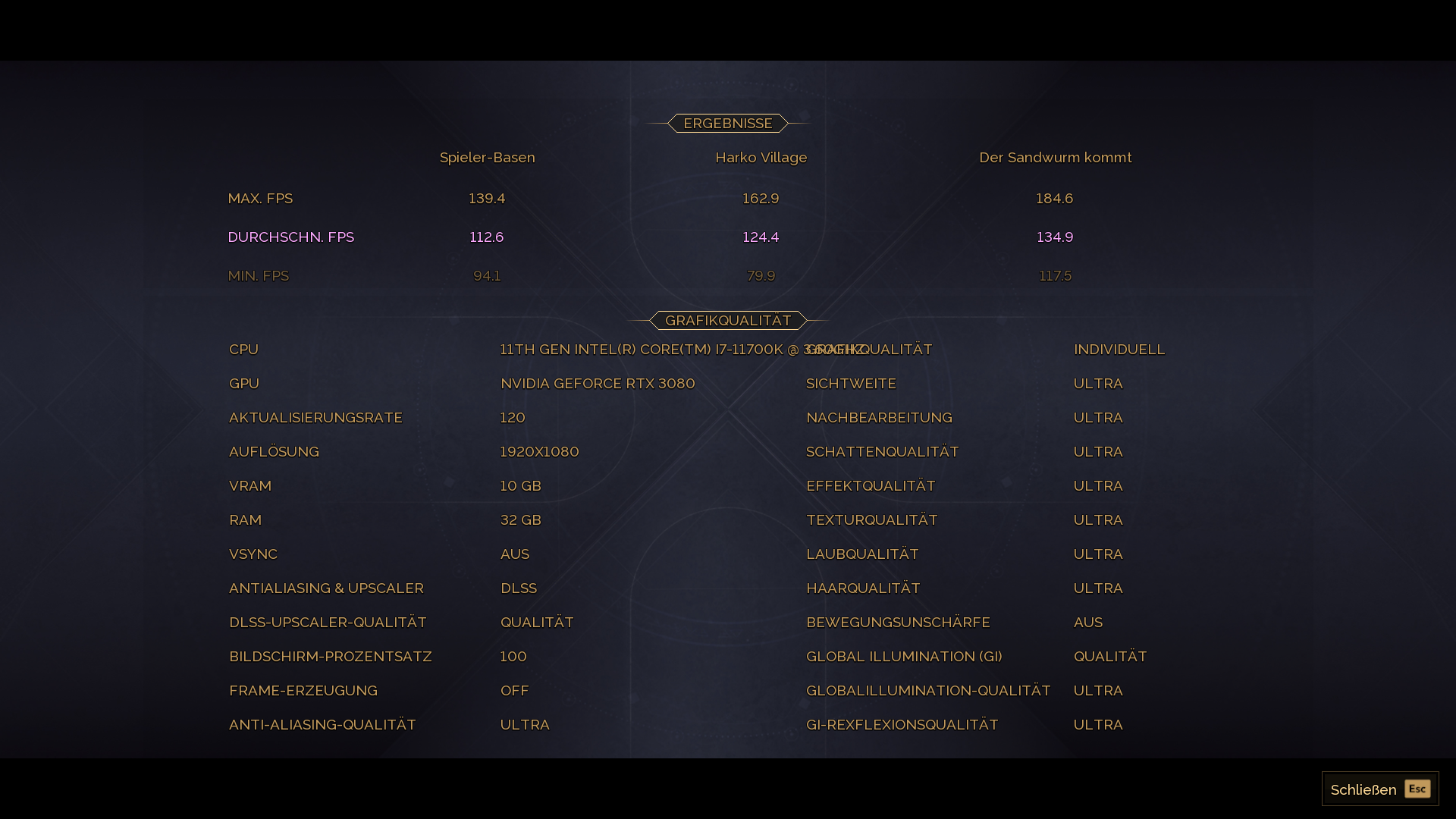 Deine Settings stimmen nicht, da muss überall Ultra statt hoch stehen.GOOFY71 schrieb:System: RTX 2070 S (190W), 265KF (150W), 48GB DDR5@6200