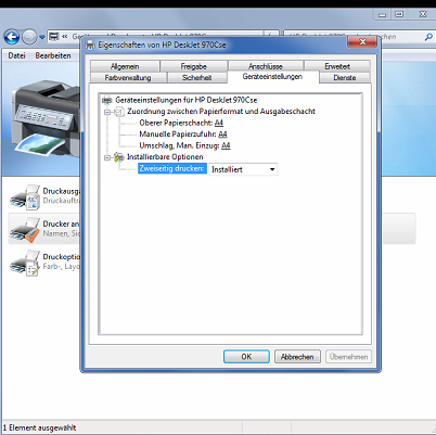 ich habe einen HP Deskjet 959c mit einer Duplexeinheit (HP C6463A). Diese ist hinten im Drucker montiert und sollte eigentlich auch funktionstüchtig sein. Leider kann ich im Win7 nirgendwo auswählen dass diese Einheit aktiviert ist bzw. auch nicht, dass er beidseitig drucken soll.
