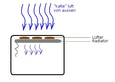 Somit wird aber nur die warme innere Luft transportiert. Somit wird der Radiator nicht wirklich "gekühlt."
