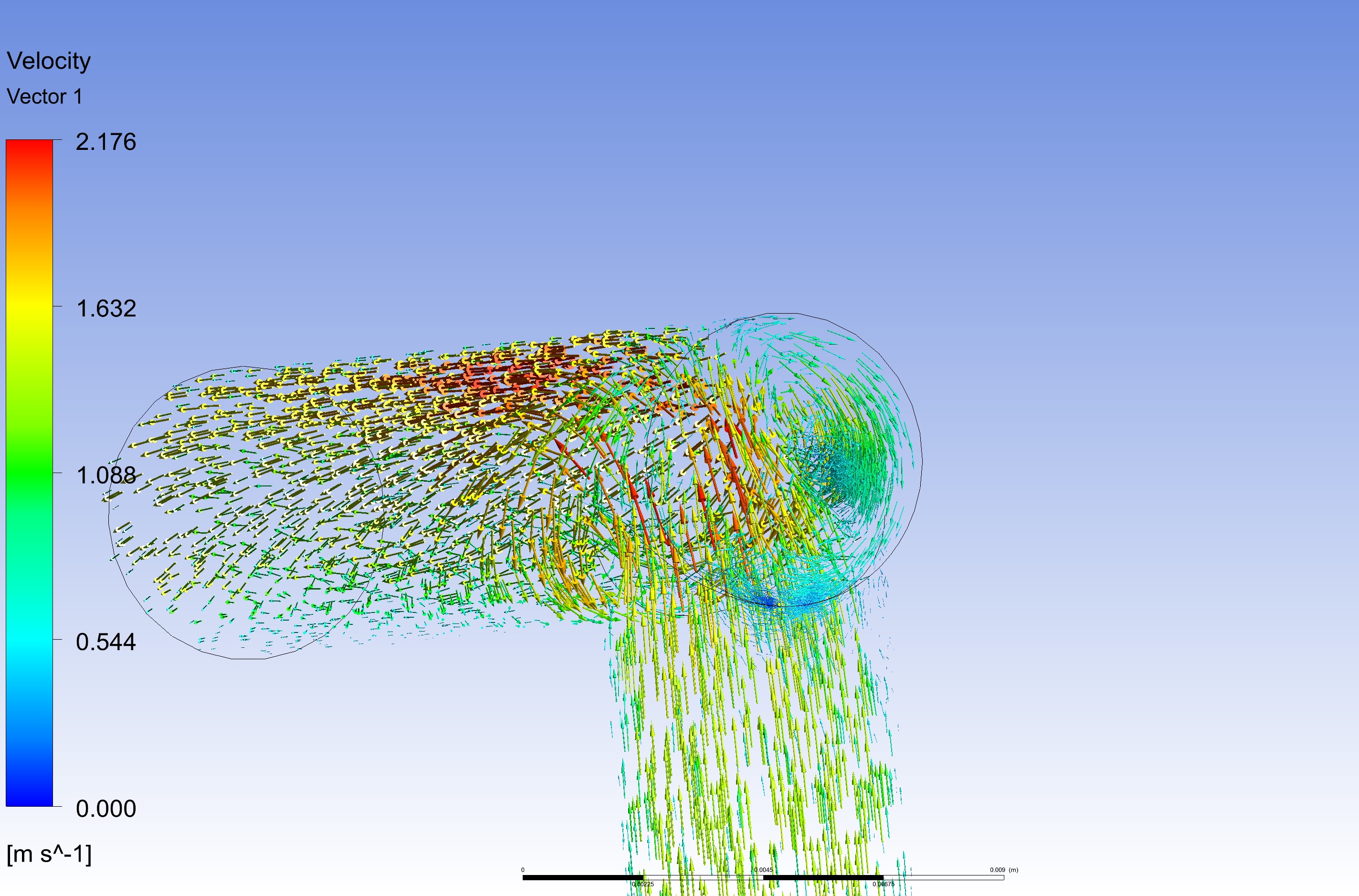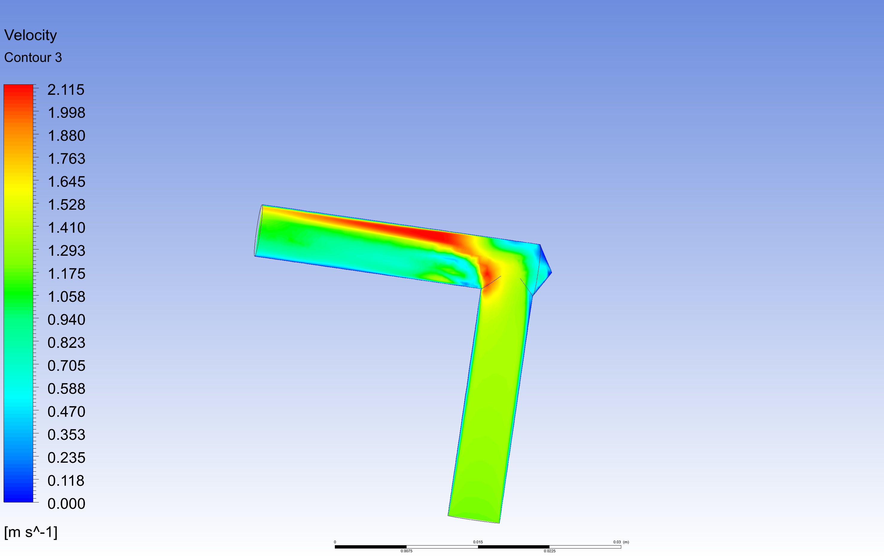 Da aber nun das doch immer noch ein nicht ganz genaues Ergebnis ist, und ja der Druckverlust pro Winkel interessant ist. Habe ich das mal Anhand einer Simulation aufbereitet. Hier kann man auch sehr schön den Strömungsverlauf sehen.