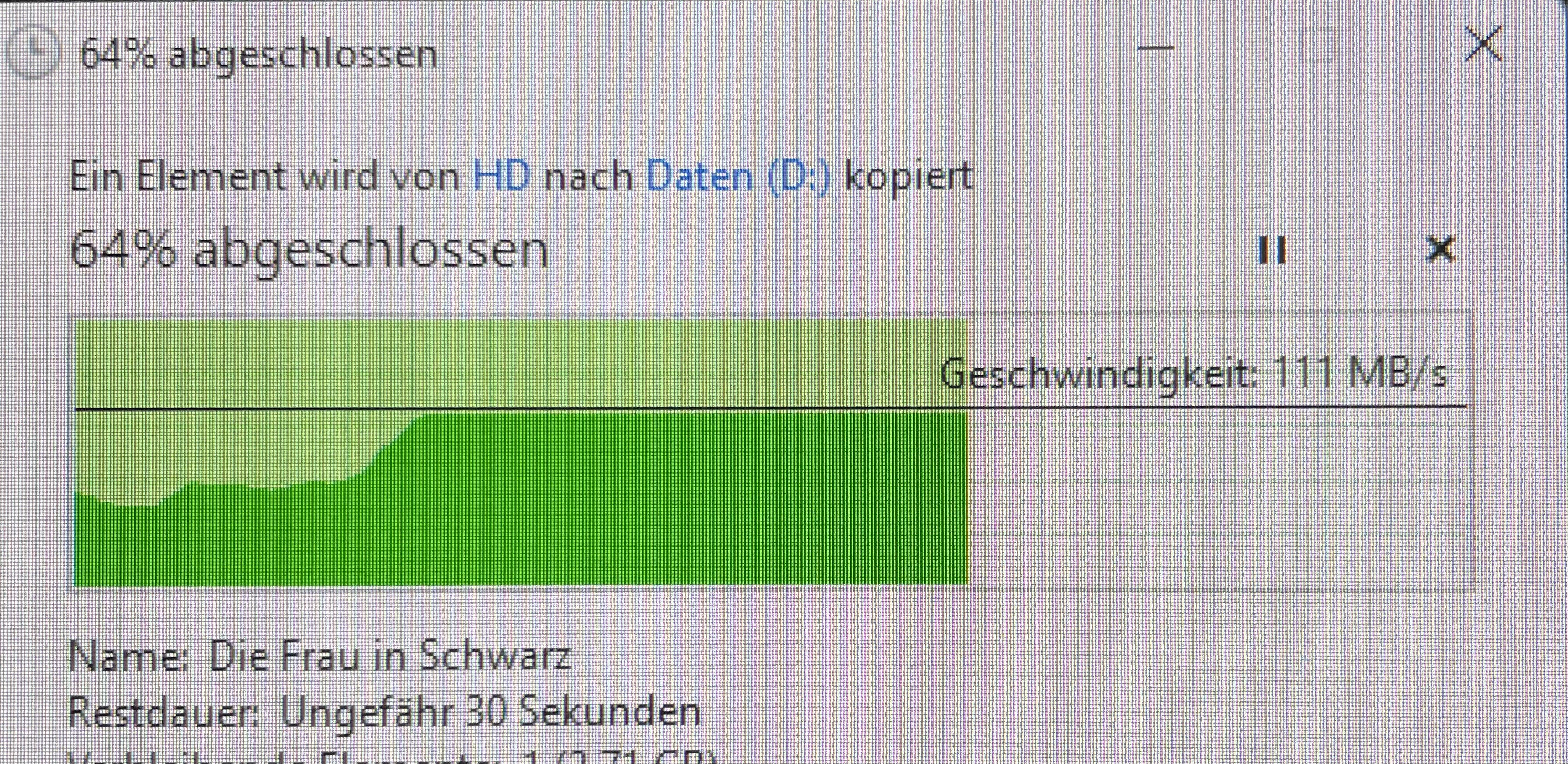 Auch das Kopieren riesiger Backups läuft dann ohne Auffälligkeiten durch.