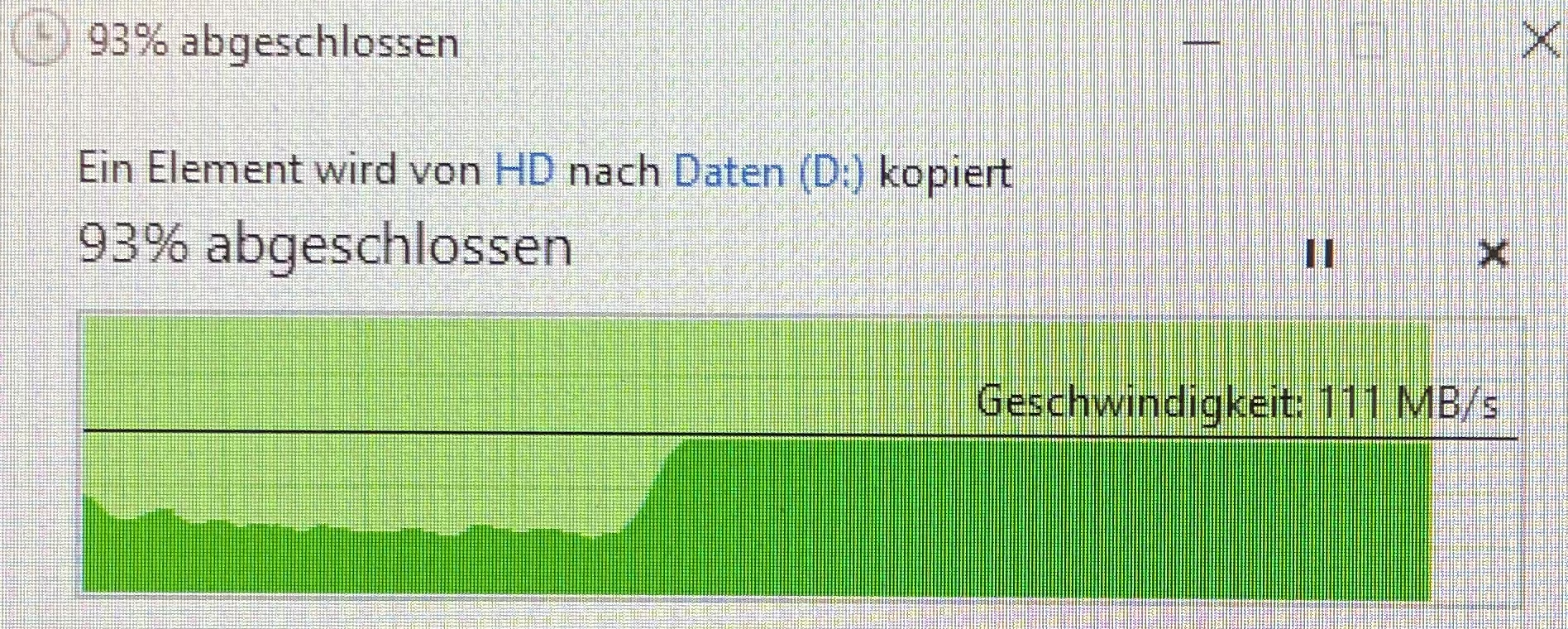 Bei meinem alten PC und Windows 10 kann ich mich wage daran erinnern, dass Kopiervorgänge auch oft mit diesem Tempo starteten, dann aber nach wenigen Sekunden die volle Bandbreite erreichten.