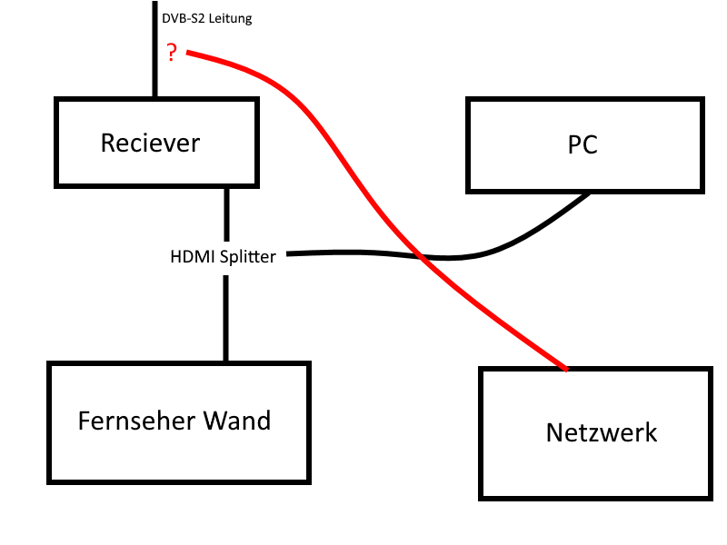2. Durch einen HDMI Splitter soll ein zweiter ausgang zu einem Fernseher gehen um dort Fernsehn zu schauen.