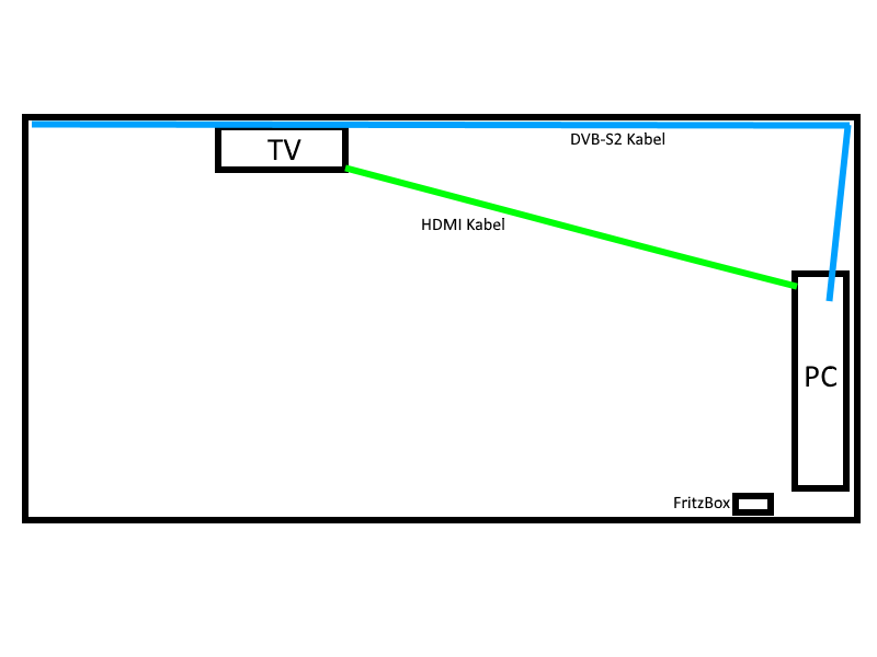 Folgendes ist geplant. Ich habe 1 DVB-S2 Kabel in meinem Zimmer was ich folgender maßen aufteilen will: