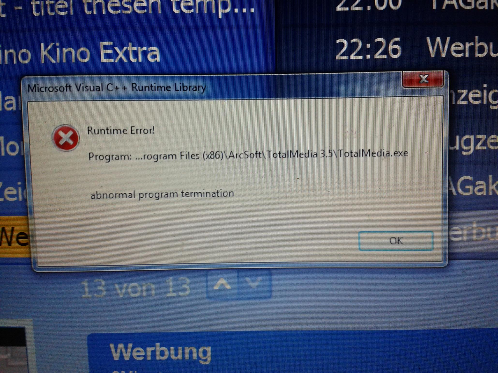 Habe den Stick wieder im Austausch.Nach mehrmaligen Scans der Sender,anstatt der Stummelantenne,versuche mit einer ONE FOR ALL ZIMMERANTENNE mit Verstärker und Ortsveränderungen,erst nach längere Suche ein Empfang von 13 Sendern.Auch Schwankungen von vollen Balken auf Null sind dabei.BeimVersuch die erste Aufnahme zu machen,kommt diese Meldung:Beim bestätigen schließt sich das Programm,startet ab Aufnahme.