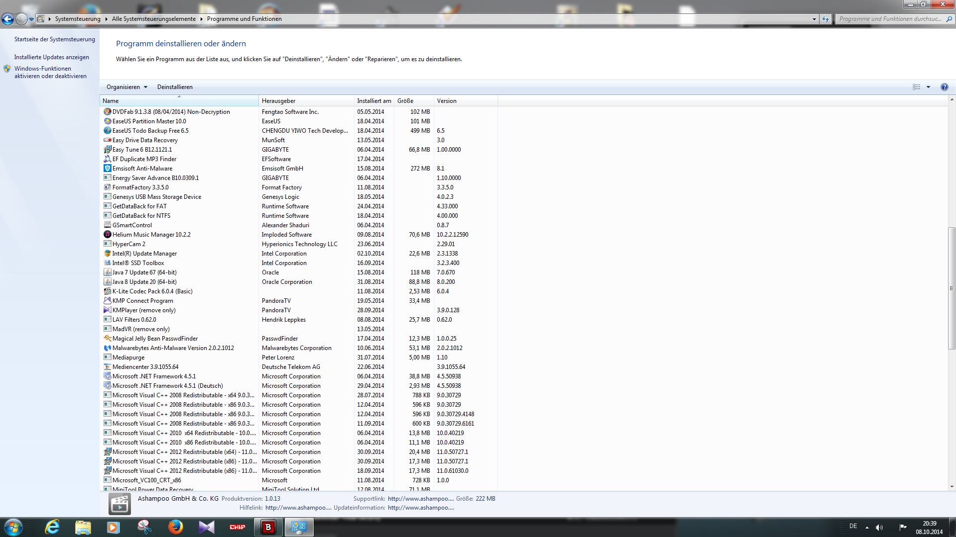 Du hast einfach zu viel nutzloses Zeug installiert (allein schon die fünf Java-Versionen). Aus anderen Threads ist bereits hervorgegangen, dass einiges davon auch Malware war. Das instabile System ist jetzt kein Wunder.