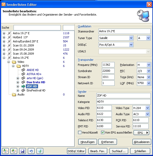 Sendersuchlauf und Sendereditierung erfordern beim dvbviewer eine Art Spezialwissen.