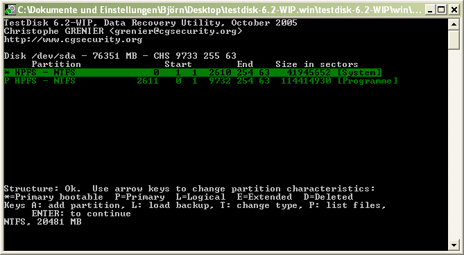 Problem ist jetzt: "E" war zuvor eigentlich eine 34-GB-Partition meiner einzigen Festplatte (80 GB) und die Partition D: (vorher 20 GB) hat sich nun seltsamerweise den Speicherbereich, der vorher zu E: gehörte, angehängt, ist also jetzt 54 GB groß. Komme ich irgendwie noch an die Daten ran, die vorher auf E: gespeichert waren???