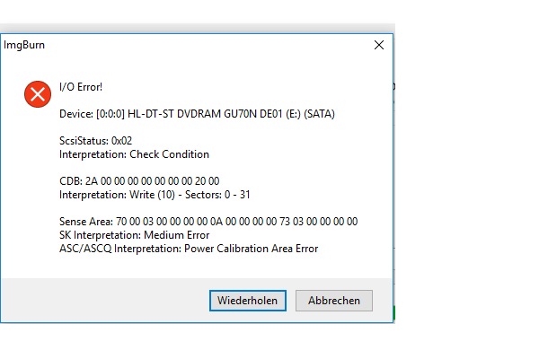 Die Folgenden Fehler kommen beim Brennen und öffnen.