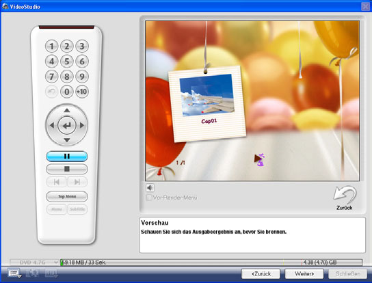 wenn ich einen film beschneide und ich dann unter "share" auf "create disk" gehe ist der film bereits drinnen und ich kann auf "next" klicken - hier kann ich noch das menü überarbeiten - wsa ich auch gemacht habe ABER jetzt geht es nicht mehr weiter