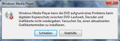 Mit dem Media Player Classic - Home Cinema habe ich es auch versucht, dann stand unten am Rand "DVD: Fehler mit Kopierschutz" und die DVD wurde nicht abgespielt.