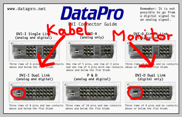 Ich habe mir ein DVI-Kabel gekauft, welches nun aber nicht passt, da mein Monitor keinen DVI-I Eingang, sondern lediglich einen DVI-D Dual Link Eingang hat. Kann ich die 4-Pins einfach abschneiden oder muss ich umtauschen (wäre ziemlich umständlich). Zur Verdeutlichung habe ich ein Bild angehängt, bei dem ich vier Pins mit einem Kreis markiert habe.