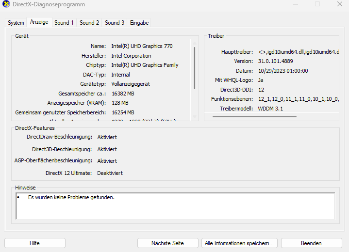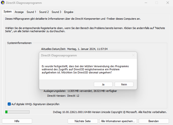2. DxDiag crash (Spiele starten nicht)