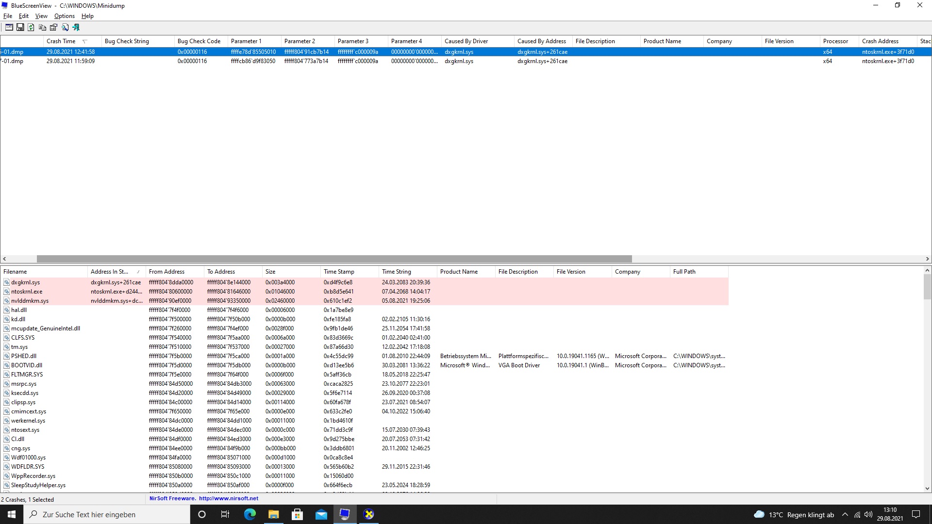 ich habe seit knapp 4 Tagen das Problem das mein PC während des Spielens immer wieder nach gut 15 Minuten von alleine herunterfährt und sich neu startet. Schuld daran sollen wohl laut BlueScreenView folgende Fehler sein: