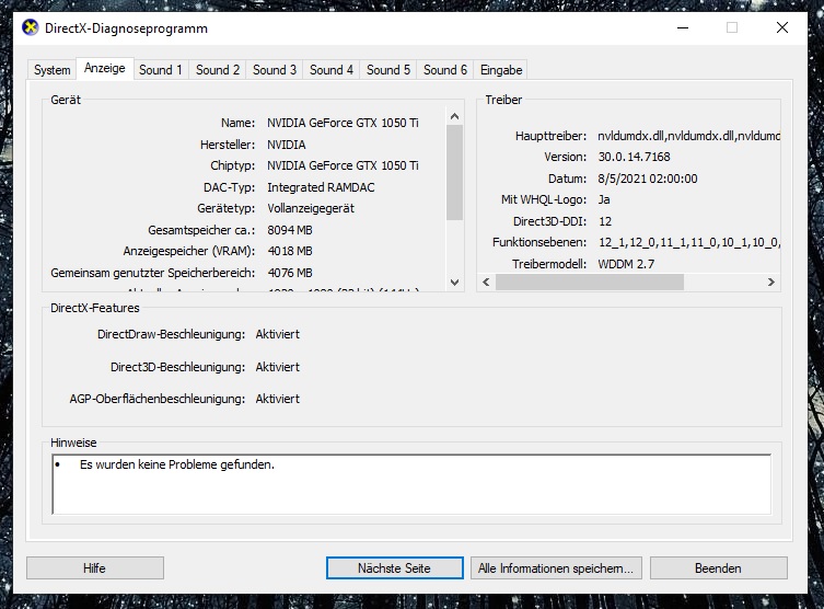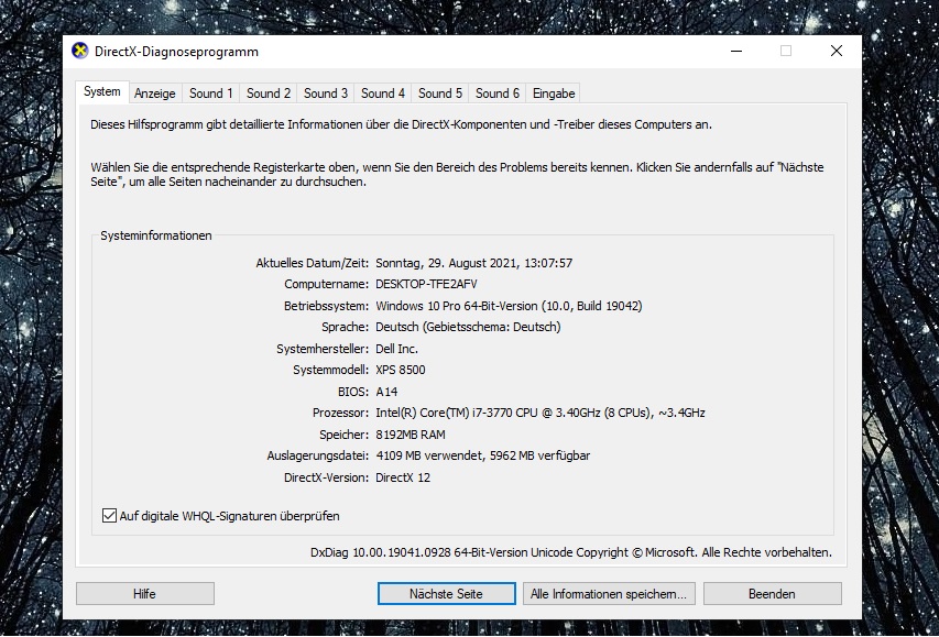 Daraufhin hab ich das System neu aufgesetzt. Treiber, Updates usw alles neu Installiert (soweit sollte alles auf dem Aktuellen stand sein). Fehler besteht aber weiterhin.